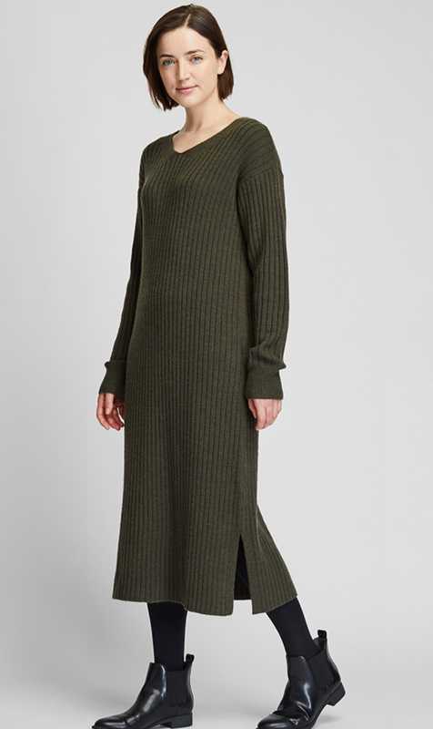 Вязаное трендовое платье от Uniqlo. Must have осеннего сезона. Не глубокий V образный вырез. Разрезы по бокам. Вязка в крупный «рубчик». Мягкий, плотный, хорошо держащий форму материал красиво облегает фигуру. Склад 74% Acrylic, 15% Wool, 11% Polyester Цвет: черный, темный зеленый Размер L (длина 116, длина рукава 55, спущенное плечо, рекомендуемый объем груди 94-99 см)