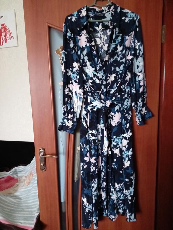добротное качественное брендовое платье на прохладе дня длина 132см,плечи 43см,пог 54см,пот 47см,талия фиксируется вшитым в боковые швы поясом, по бедер 62см, длинна рукава 64см с манжетом