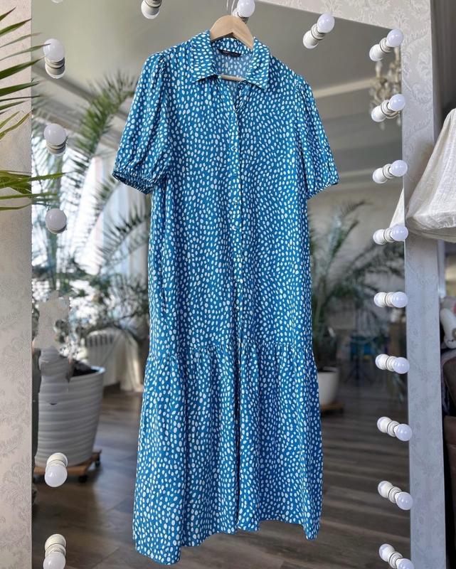 Красивенна блакитна сукня міді в розмірі 10 Пог 48 Пот 49 Поб 51 Довжина від плеча 113 Ваші мірки мають бути менші, щоб сіло трішки вільно Тканина натуральна