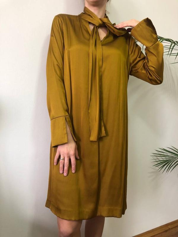 Изысканное атласное платье с рукавами шелковое