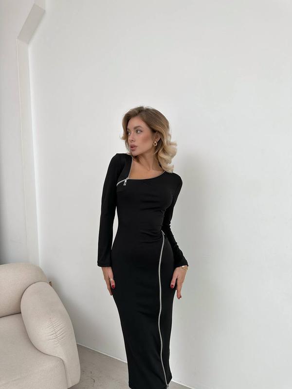 🔥Элегантное платье с акцентными молниями, за счет которых можно регулировать высоту разреза 🌪️ ▪️размер: хс-с, с-м, м-л ▪️цвет: черный ▪️ткань: микродайвинг ▪️модель: 166 ▪️sol