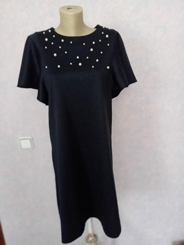 Продам нарядное черное платье, рукав крылышки, спереди украшено бусинами. размер Л, Хл