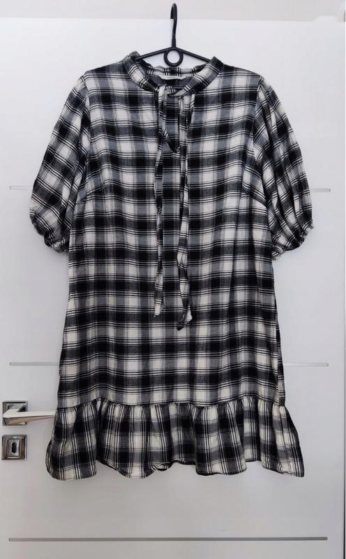 size 🍒 George 🍒 14 котон 67% п/е 33% Платье миди в стиле беби долл в черно-белую клетку. Свободный крой (оверсайз) с оборкой по нижнее- му краю. Воротник стойка с завязками в виде банта (pussy bow) и объемными рукавами-баллоны. Рукава на резинке. Мягкая ткань шотландка, приятная к телу и на ощупь. Платье выглядит нарядно и стильно. 💰 ЦІНА на "Шафі" 789 грн 🙂 С нетерпением жду у меня на странице.Бужу удачных покупок и супер настроения от них.