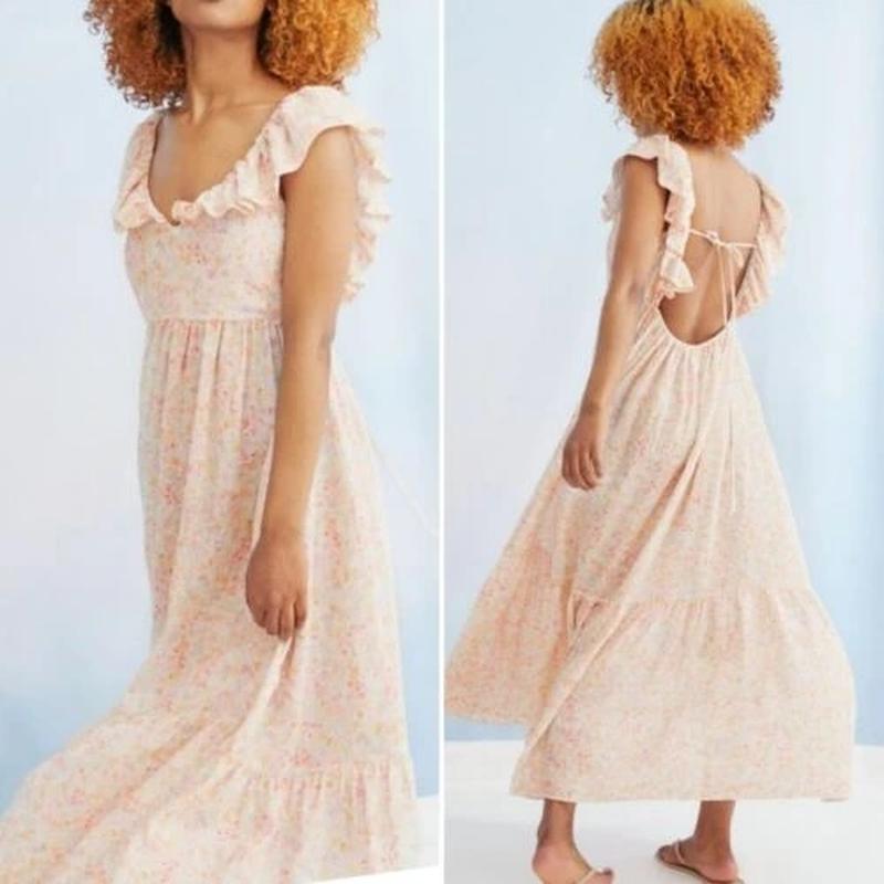 Льняное платье ярусное миди в принт h&m лен лиоцелл