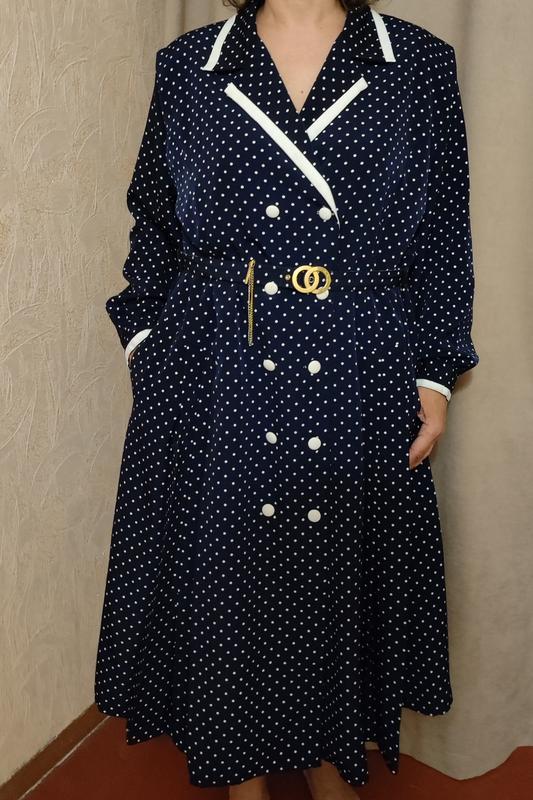 Темно-синя сукня на підкладці (100% ацетат). На моделі з розміром XL сидить вільно. Довжина рукава = 60 см