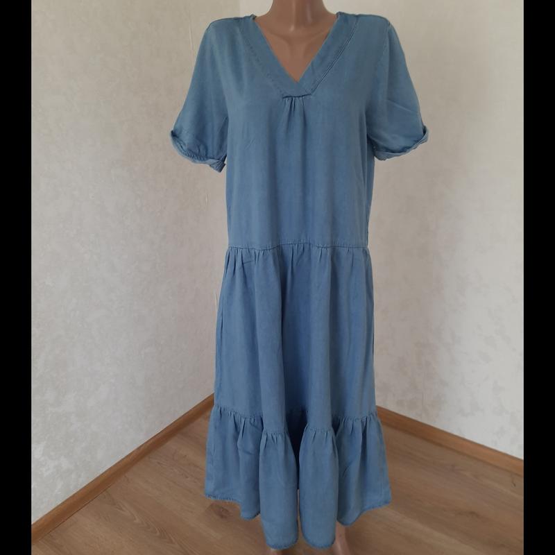 Актуальное стильное ярусное джинсовое платье. Состав: 65% вискоза,31 лиоцелл,14 коттон. Замеры: ПП 43 ПГ 52 ПТ 51 ПС 73 Длина 123 Рукав 26