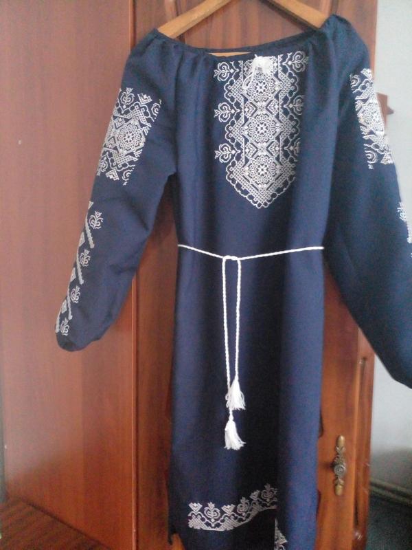 Вышиванное платье на габабине, машинная вязка раз одите. Довжина 98см. ОГ - 49 см.