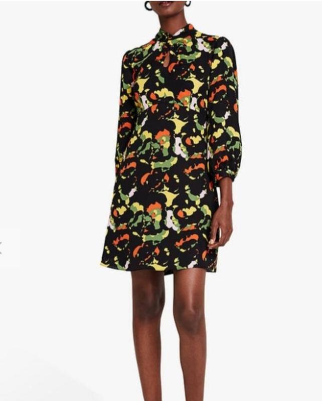 Платье на подкладке от английского бренда. Отрезанная талия и красивые пышные рукава. Довжина 90 см, пот 40 см, пог 48 см, рукав 50 см.
