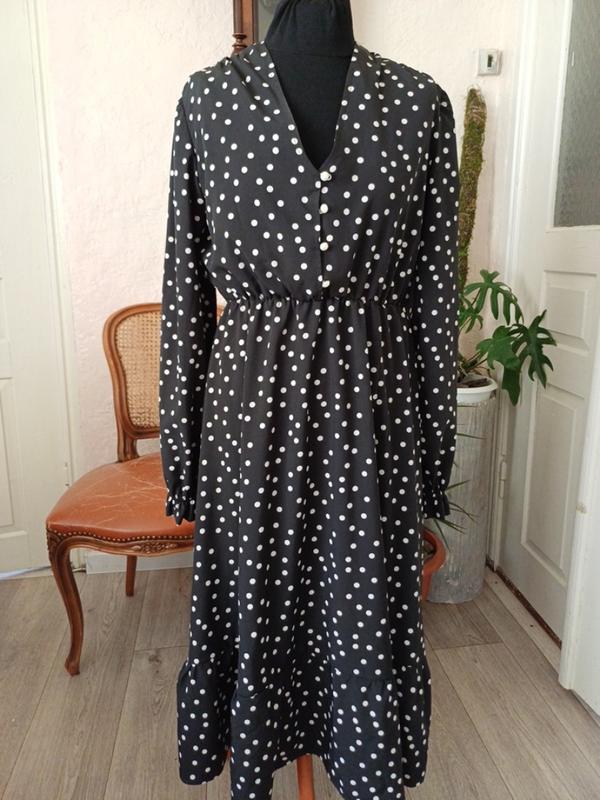 Удобный вариант на осень, красиво миксуется с аксессуарами, пиджаком. Длина 117, рукав 65, полуобхват по линии груди 51, талия резинка, тянется до 48, бедра 63