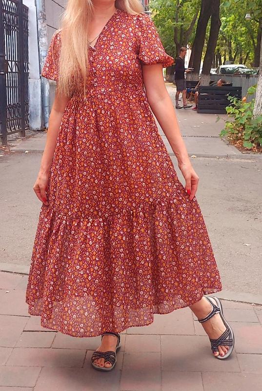 Легкое шифоновое платье миди в цветочный принт primark размер s