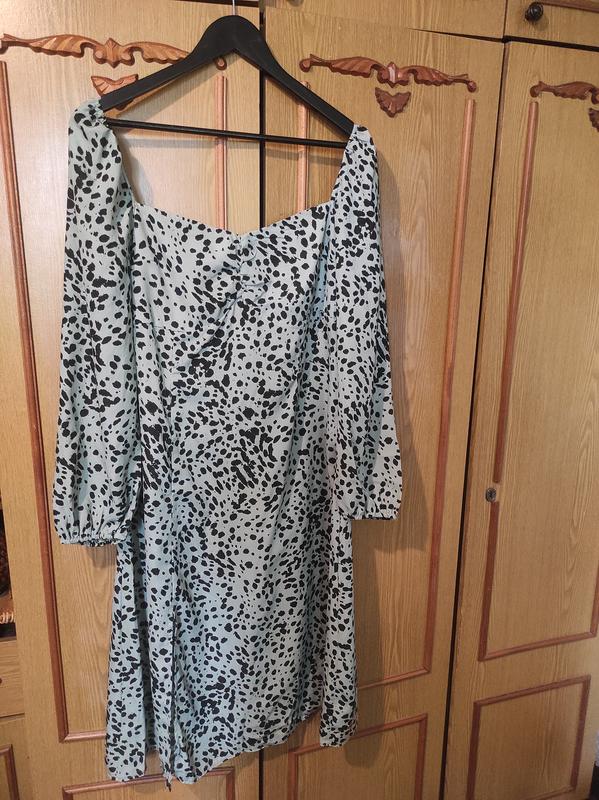 Оливковое платье в животный принт, перешитое. Имеет недостатки на швах, виден на фото. ПОГ 58, ПОТ 52, ПОБ 64, ДОВЖИНА 110, РУКАВ 66. Если нужны дополнительные фото или замеры, пишите)