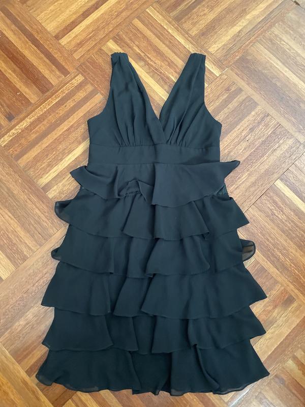 Нове чорне шовкове ярусне плаття сукня з воланів naf naf 38 m франція 🇫🇷