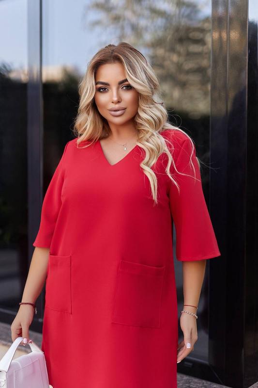 Плаття Розміри : 46-48,50-52,54-56,58-60,62-64 Кольори : чорний , червоний , хакі , графіт , електрик Тканина : крепкостюмка Плаття вільного крою з V-образним вирізом на грудях, з боків дві кишені Параметри моделі -норма 96-73-104, зріст 170см, на ній розмір 46-48; параметри моделі-батал Інни 108-86-110, зріст 165см , на ній розмір 50-52. Заміри виробу : Розмір 46-48 Обʼєм грудей 104 Обʼєм талії 112 Довжина рукава 36 Біцепс 36 Плечі 45 Довжина по спинці 95 Розмір 50-52 Обʼєм грудей 114 Обʼєм талії 120 Довжина рукава 37 Біцепс 38 Плечі 46 Довжина по спинці 96 Розмір 54-56 Обʼєм грудей 122 Обʼєм талії 128 Довжина рукава 38 Біцепс 40 Плечі 48 Довжина по спинці 97 Розмір 58-60 Обʼєм грудей 130 Обʼєм талії 132 Довжина рукава 39 Біцепс 42 Плечі 49 Довжина по спинці 98 Розмір 62-64 Обʼєм грудей 140 Обʼєм талії 144 Довжина рукава 40 Біцепс 46 Плечі 51 Довжина по спинці 102 люб