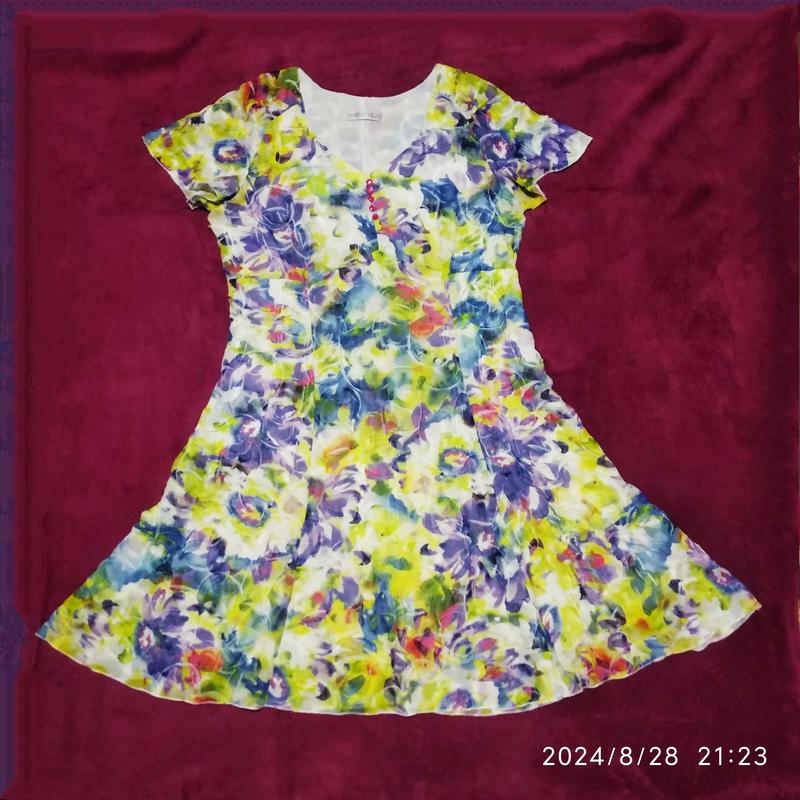 Очень легкое и воздушное платье на подкладке. Можно носить с поясом. Размер указан 46. Замеры: Длина - 108 см ПОГ - 55 см ПОТ - 50 см Ширина низу - 127 см Отправлю по почте после оплаты на карту. Возвращение нет. Детали уточняете в листировании. Присутствует ТОРГ