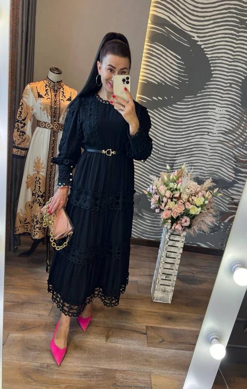 сказочно красивое платье классического цвета приталенного силуэта с круглым вырезом миди, придающее утонченность образу, эффектными рукавами на высоком манжете с пуговицами - жемчужинками и пышной юбкой, в комплекте с пояском, отлично подходит для различных событий: от торжественных мероприятий до повседневных выходов платье выполнено из коттона и кружева, прекрасно сочетает в себе легкость и романтичность, хлопковая ткань обеспечивает комфорт, особенно в теплую погоду, а кружевные вставки добавляют изысканности, элегантный белый цвет делает ее чистой и свежей размер 44-46 длина 131-132 см, от шеи до талии 40 см, объем груди 98- 100 см, талия 81 см, длина рукава от шеи 68 см код 327 цена 1850 грн