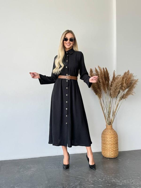 Модель 5514 Женское платье Размерный ряд S (42-44); L(46-48);XX(50-52); XXX(54-56) Ткань креп жатка, очень приятная на ощупь, не просвечивается) Цвета черный, беж, голубой и белый Платье с длинным рукавом, которое можно аккуратно регулировать, застегивается на пуговицы Талия на резинке, за счет чего идеально садится по фигуре Накладные карманы У комплекті пояс Очень стильная модель, можно носить под разную обувь и надевать на любой случай Супер качество