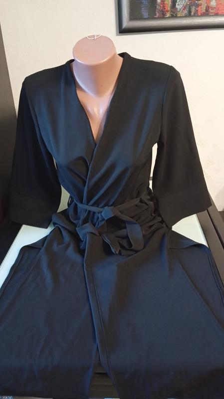 Черное платье на запах, платье-халат. Длина деми, ниже колена. Размер S-M. Страна производитель Италия