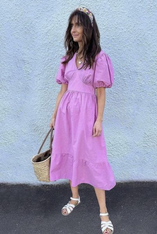 Нежное платье с рукавами буфами, по груди фигурная кокетка, юбка свободная с рюшей по низу. Сзади по пояску широкая резинка, что практически в носке Большой размер. Замеры: ПП 42 ПГ 60 ПТ 50 см тянется до 60 (резинка) ПБ 83 Длина 127 Рукав 35 Арт 5234