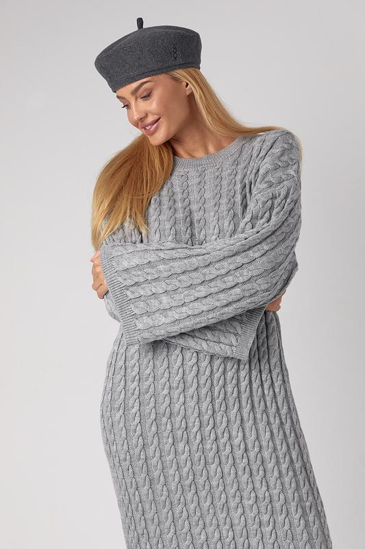 С таким вязаным модным платьем твои будни будут максимально уютными, а ее трендовые узоры из косичек, расположенные по всему изделию, еще и визуально удлиняют силуэт. В изделии линия плеча удлинена, края прямого низа и длинных рукавов выполнены из вязки в виде узкой манжеты. Круглая горловина дополнена окантовкой с тонкой резинкой. Это вязаное платье покорит твое сердце с первой же примерки!