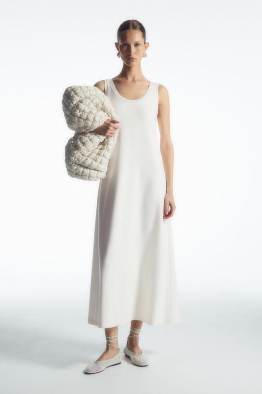 Очень классное белое платье миди. Модель выполнена из смеси вискозы ECOVEROTM, очень приятная на ощупь и к телу. Имеет овальный вырез горловины и ребристые края. Состав: 67% вискоза ECOVEROTM, 25% переработанный полиамид, 7% эластан, 1% полиамид. Машинная стирка. Качество супер! Как всегда в COS! Размер С. Действующая коллекция. Замеры: объем в груди 45 см ширина по низу 80 см длина 135 см В НАЯВНОСТІ !!!