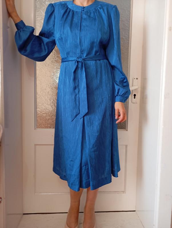 Предлагаю винтажное праздничное платье из тонежного ацетатного шелка с пышными рукавами, юбка расклешенная, спереди складка. Сзади очень длинная молния. Спереди на заднике застежка на двух пуговицах. На талии длинный пояс. Платье на подкладке Размер 40. Замеры: ПОГ-51,ПОТ-43, ПОС-54.Длина-108. Рукав-61. Стан - идеальный