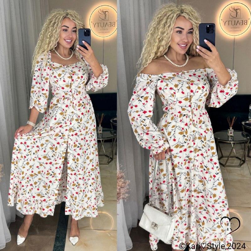 Плаття Тканина шовковистий софт Розміри 42-44, 46-48,50-52 Стильна та елегантна сукня виконана з шовковистого софту, рукав та талія на резинці, ґудзики робочі. ks