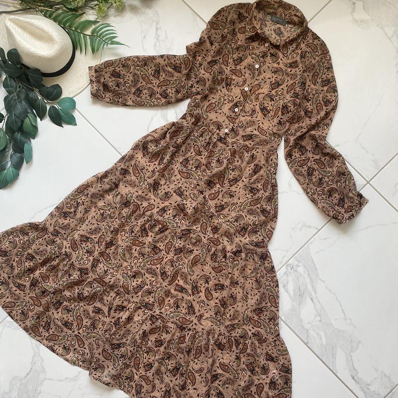 🌸Платье беж миди в принт состояние идеальное, шифон на подкладке, верх на пуговицах р 8 с -длина 122, рук 57 -нОг 46 -нОт 41 -нОб 55 ФОТО НА ТИЛИ НЕМАЕТ