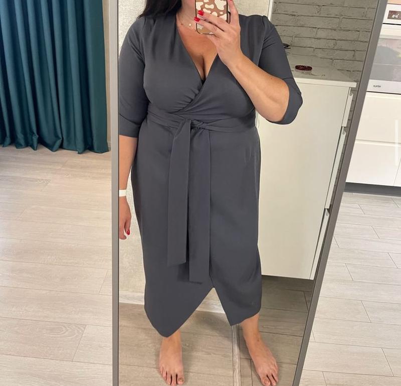 Шикарное платье с поясом Состав ткани отсутствует, на ощупь как костюмная ткань Пог 55+, идет на запах и есть вытачки Пот 50 Поб запах 59 Рукав 42, бицепс 22, плечи 40