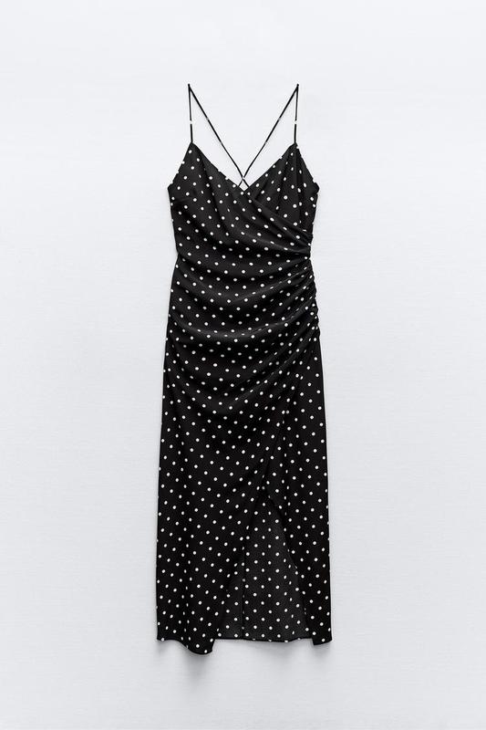 Сатинова сукня в горох міді zara / сатиновое платье сарафан миди в горох