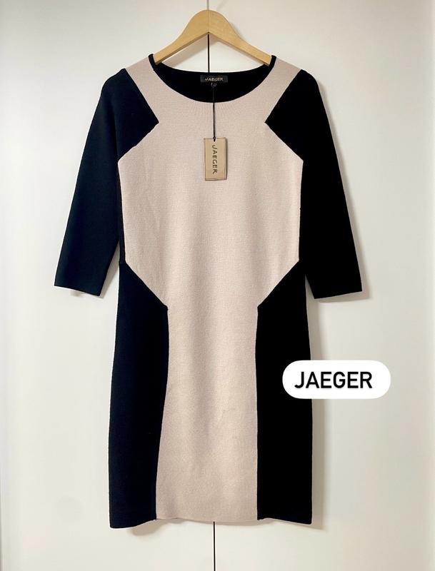Великолепное платье от дорогого бренда Jaeger Размер S Пог 41 см, рассчитано одевать чтобы тянулось, до 50 см, бедра так же, тянутся до 55 см спокойно. Длина 92 см Тепленька, 50% шерсть Нова ( на ценнике 199ращать)