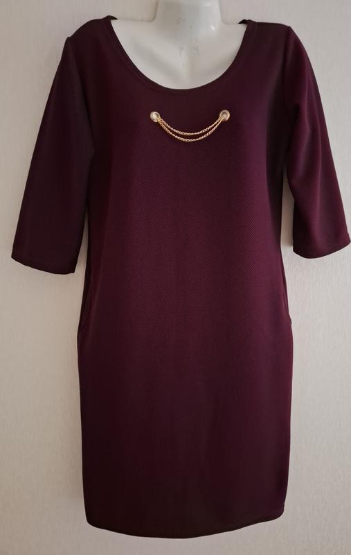 Платье женское насыщенный бордовый цвет.,тимные боковые карманы, цепочка в качестве украшения, тричетверты рукавов Размер:46/48 Плечи-39 Пог-51 Пот-46 Поб-52 Длина-103 Рукав-41
