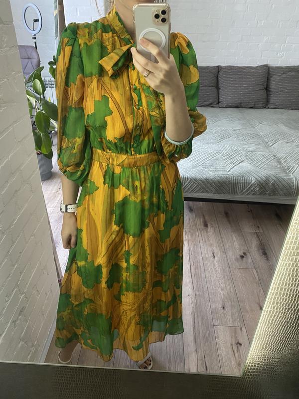 Надзвичайно красива шифонова сукня, підклад батист. Красиві ґудзики, збоку на талії застібається на молнію. Одягнута один раз. Причина продажу, трохи не мій колір нажаль. Виглядає розкішно. Розмір підійде на с і на м. В мене параметри 84/64/94