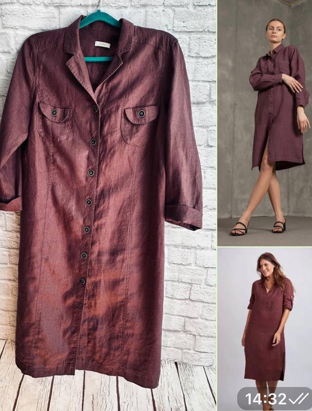 Платье-рубашка из 100% льна от бренда Riani, с известной своей одеждой люкс класса Прямой крой Сзади слегка приталенная Рукав 3/4 или 7/8( можно отвернуть) Полностью на пуговицах Льон цупкий , але легкий Вещь б/в Следы ношения минимальны Плечи 42 Рукав 55 ПОГ 51 ПОТ 48 ПОБ 55 Длина 105
