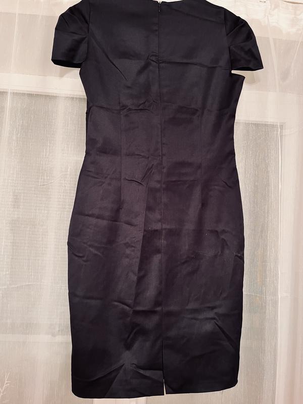 Сукня на підкладинці, сукня футляр, сідає чітко по фігурі, сзаду на блискавці і розріз. Заміри 44-39-49, довжина 95, розмір L., колір темно синій