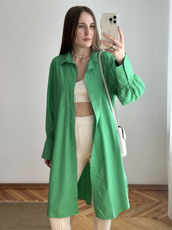 рубашка-платье H&M фасон оверсайз классная качественная ткань 51% вискоза, 49% коттон присутствуют затяжка на манжете, на носке не влияет в целом состояние идеальное размер М (пог 61) 📌 цвет насыщен яркий, как на последних фото! не знаю почему Шкаф спела качество и насыщенность) больше качественных фото и видео на теле находится в инте, подписанная как и здесь🔎 🧍🏻♀️МОИ ПАРАМЕТРЫ: рост 168 см, 86-64-90