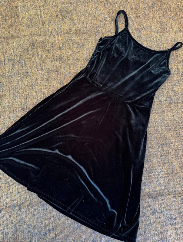 Новое платье OLKO из черного велюра. По бокам имеет карманы. Продаю, потому что чуточку больше на меня. (Я ростом 172 см, вес 53 кг / 86-63-93) Ширина платья в шрудной клетке 40 см. Длина от крепления бретелей к низу 85 см. Стоимость 600 грн