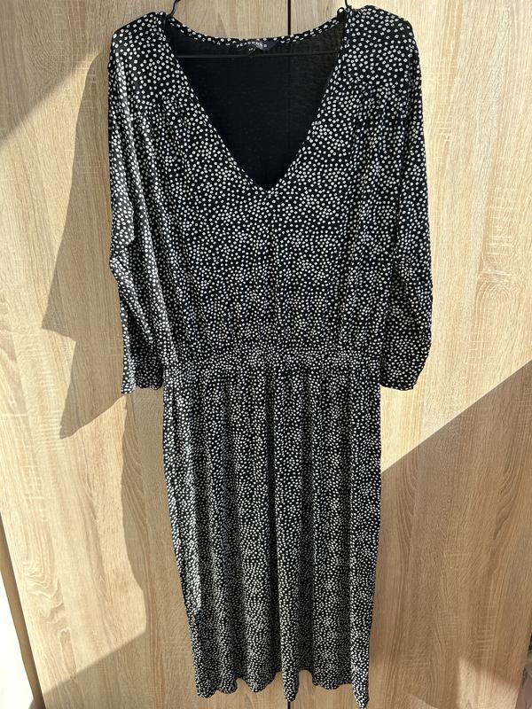 Платье в идеальном состоянии. Длина 135 см. Груди 55 см (тканина гарно тягнеться) Талия (в не растянутом состоянии 38, тянется до 55) Стегна 60.