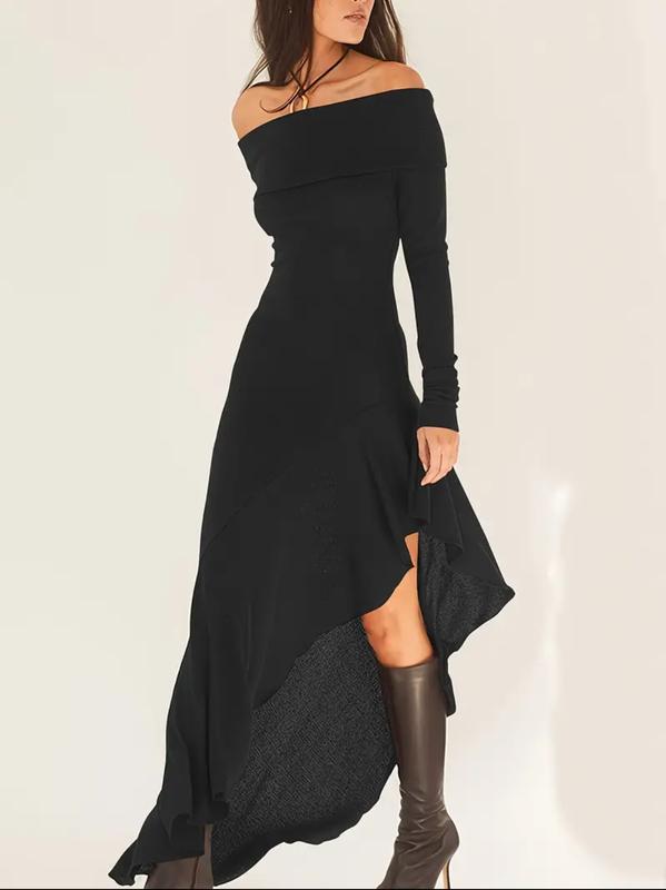 Платье с открытыми плечами и длинными рукавами, элегантное с открытой спиной и асимметричным подолом. Размер S/M, новое, цена 730
