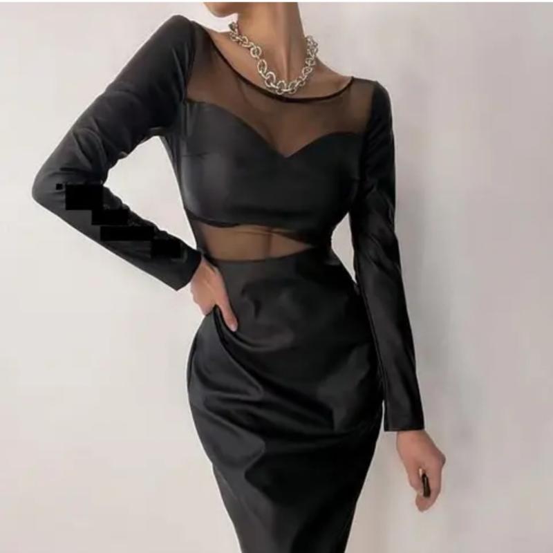 Платье женское из эко-кожи Модель 287 им Размер: 42-44, 46-48 Ткань: эко кожа + стрейч сетка Цвет: Черный