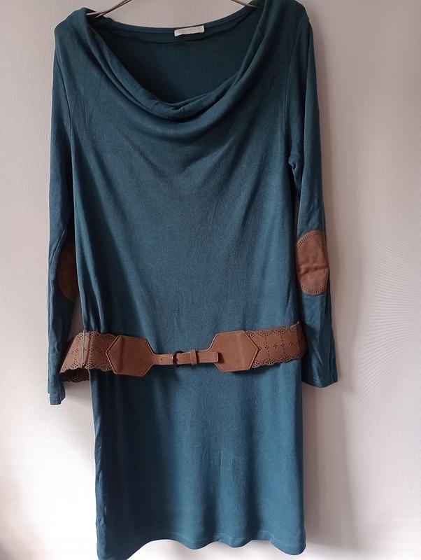 Платье, изумрудный цвет, пояс. Бирки с составом ткани нет.