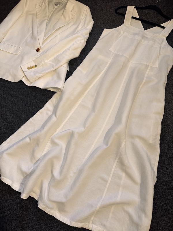 Лянный сарафан, хорошее качество пошива, есть боковые карманы.