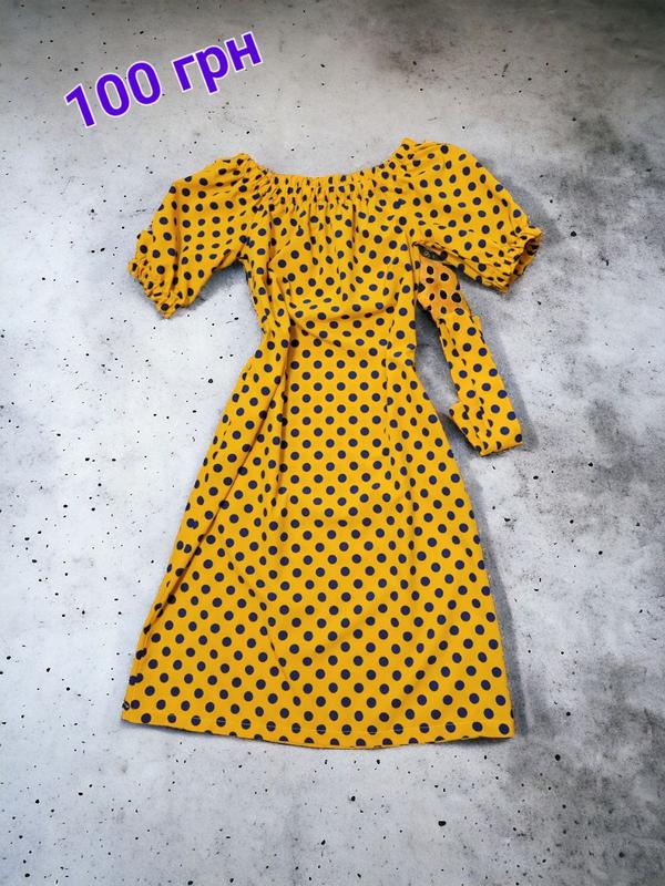 Сукня в горошок, яскрава. С пояском. Длина 95 см, грудь 43 см, длина рукава 30 см.
