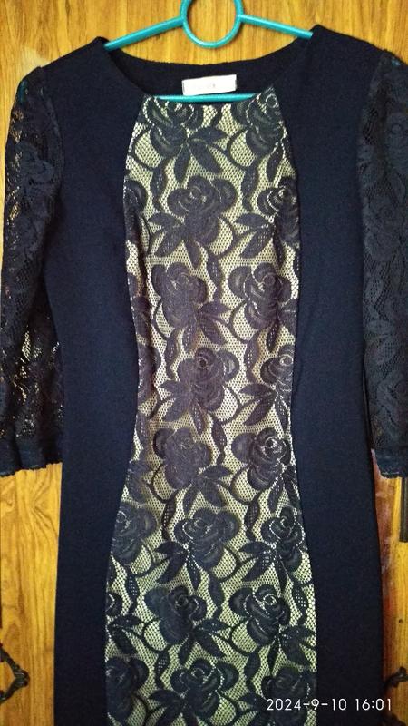 По середине втавка из гипюра на подкладке, что вытончиваю фигуру, не мнется из гипюра., выглядывает красиво.Ткань не мнется.