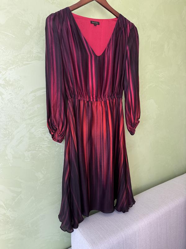 Невероятное платье от бренда Escada. Идеальная посадка, летающая, легкая и изящная. Размер 34. Одетая пару раз в мероприятия. К ней идет платок, шарф, или же можно надевать как пояс. Отдам, потому что уже не мой размер, нажаль.
