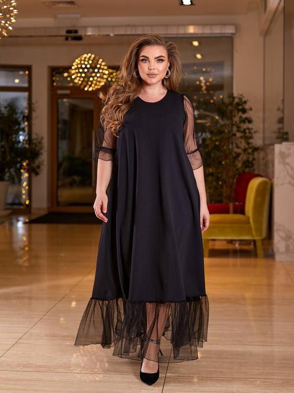 ⬆️Платье Мод 775 ❤️59 Ткань:креп-дайвинг +евросетка Размер:,50-52,54-56,58-60 цвет;черный, красный 50-52 ОГ - 114 см , длина рукава- 45 см, длина изделия - 140 см с сеткой , до сетки длина 112 см , ОБ - 180 см 54-56 ОГ - 122 см, длина рукава- 45 см, длина изделия - 140 см с сеткой , 112 см до сетки , ОБ - 188 см 58-60 ОГ - 130 см, длина рукава - 45 см, длина изделия - 140 см с сеткой , 112 см до сетки , ОБ - 196 см змеек и застежек нет Замеры сняты по изделию