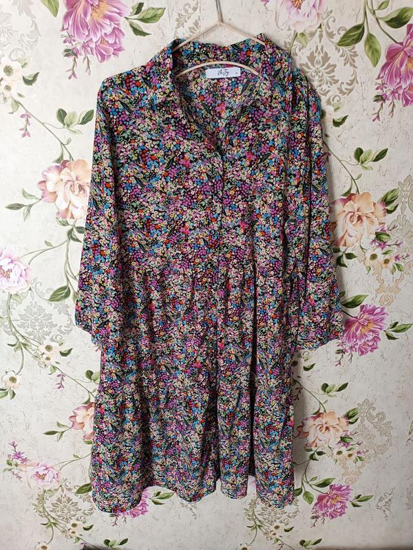 Платье свободного кроя в цветочный принт, легкое, модное,размер 46