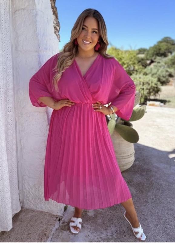 Батал! шикарное платье миди цвета фуксии с плиссированной юбкой цв