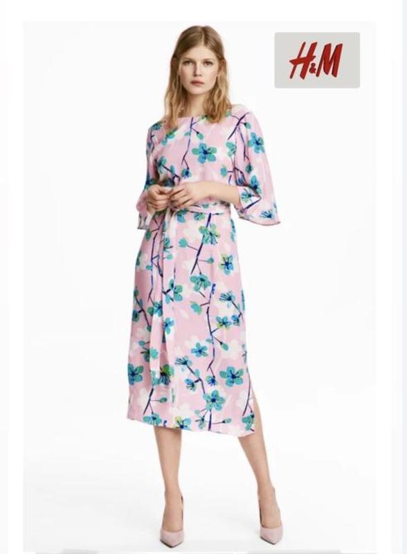 Платье миди H&M в цветочный принт. Розмір на бірці 44. На спинке V-образный вырез. Завязывается пояском. Разрезы По бокам. ПОГ 52 см + вытачки ПОТ 45 см ПОС 57 см Длина 122 см Состав: Вискоза
