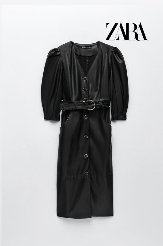 ❗️❗️❗️При покупке 3 вещей действует скидка. На 2 товар -10% (по цене ниже 1 товара) и на 3 товар -20%❗️❗️❗️ Новое кожаное платье миди от Zara Состояние новое с биркой Платье имеет широкий пояс, сбоку замок Размер С, можно М Смотрите замеры: Пог 44 тянется Пот 36 Поб 50