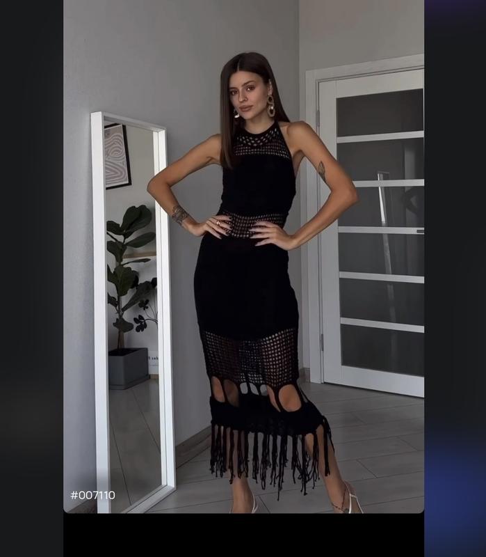 Платье вязаное с открытой спиной Черная Вязкая мягкая, приятная к телу, тянется. Длина переда - 128 см. Длина по спинке - 113 см. Полу обхват груди - 40-50 см. Полу обхват талии - 38-44 см. Напів обхват стегон - 43-53 см. Тянется! Нова. Надела 1 раз. 850 грн. Киев, также могу отправить по почте по Украине.
